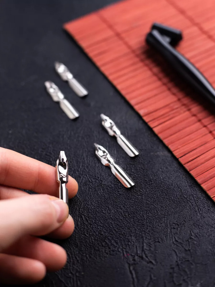 💳 Оплатить за товар можно при получении 🇰🇿 Есть бесплатная доставка по Казахстану от 1 дня 🎁 Копите бонусы с каждой покупки Универсальный набор для леттеринга, скетчинга и создания орнаментов тушью и чернилами. В набор для каллиграфии входят 5 металлических перьев (2 остроконечных и 3 плоских пера различной ширины) и косой держатель, который удобен для рисования и каллиграфии тушью и чернилами. Набор подойдет как для опытных, так и для начинающих художников. Также возможно использование набора для улучшения почерка и чистописания. |