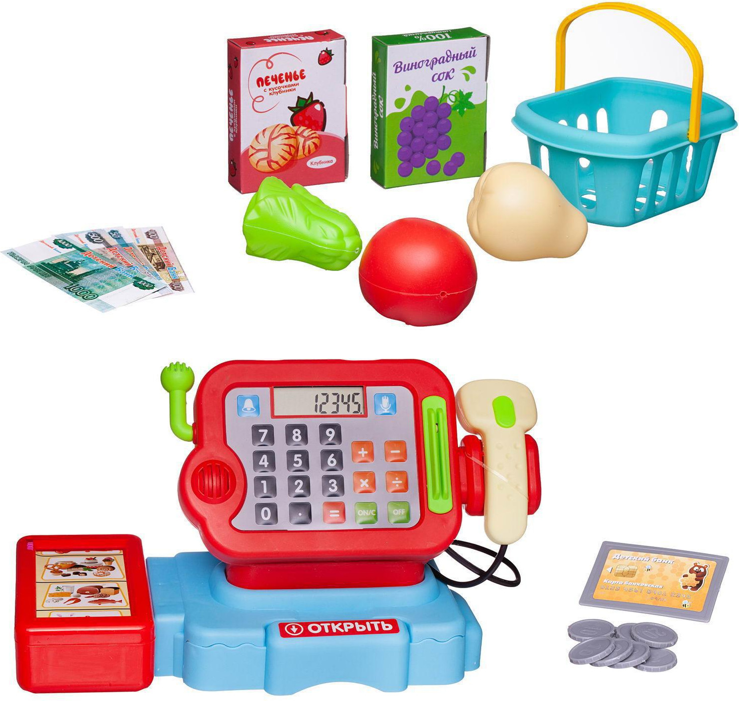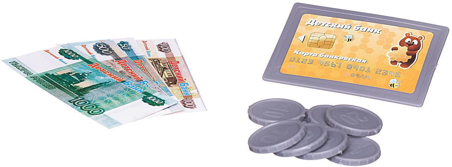 Кассовый терминал «Вместе за покупками» — замечательный набор для сюжетно-ролевых игр из серии «Помогаю Маме» от «ABtoys» будет отличным подарком для ребенка. Набор выполнен в ярких цветах, включает все необходимое для увлекательной игры в магазин. Нажатие на различные кнопки на кассе и сканере сопровождаются звуковыми и световыми сигналами. Так при проведение банковской картой через прорезь для чтения банковских карт включается звук, сопровождающий выход чека из кассы. В кассу встроен настоящий калькулятор. Для хранения денег предусмотрен выдвижной ящик.
