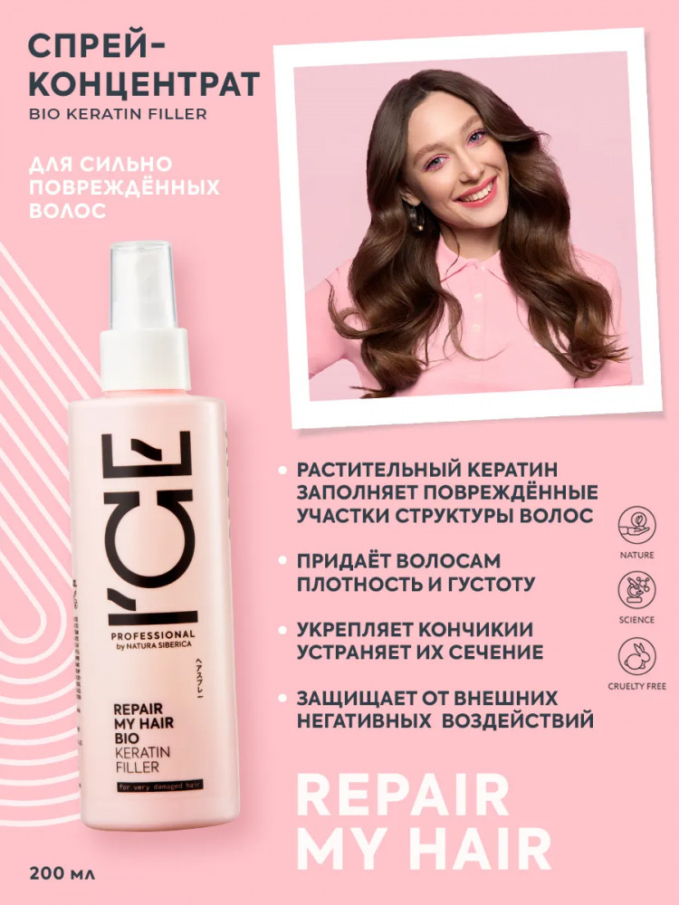 ICE Professional Спрей-концентрат кератиновый для сильно поврежденных волос