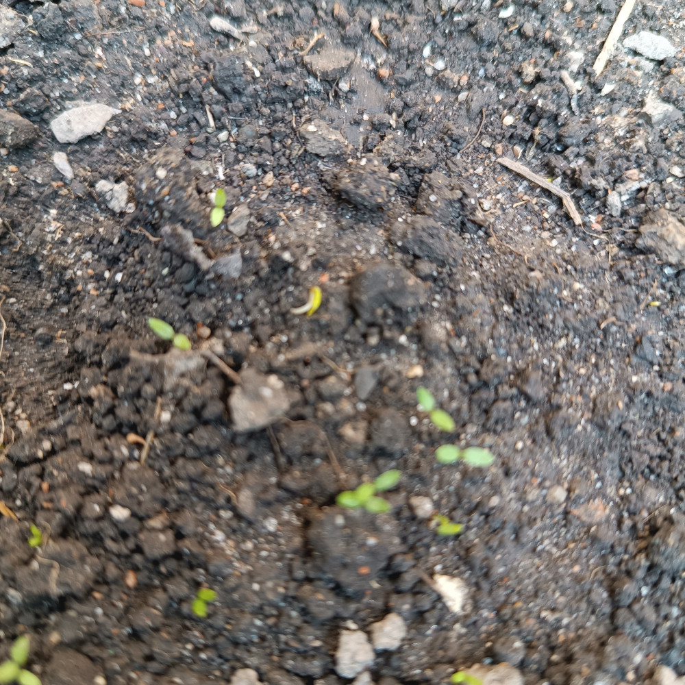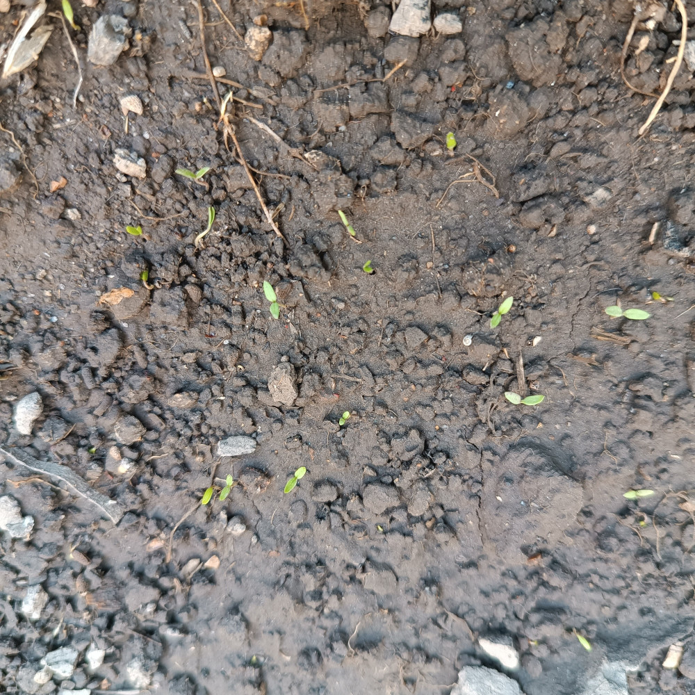 Я не знаю, что мне взбрело в голову, сейчас сеять семена цветов, цвести в этом году вряд ли будут. Надеюсь, что зиму перезимуют и зацветут на будущий год. Купила из-за того, что заявлено "можно высаживать в грунт" ,не люблю возиться с рассадой и "многолетник". Что хочу сказать, всхожесть отличная, скорее всего все семена проросли. Буквально на четвертый или пятый день. Но я тупень и просто в рядочек посеяла, муравьи, или при поливе семена в разных местах в кучку собрались. Семена очень, очень мелкие. Это уж потом мне соседка посоветовала. Надо взять туалетную бумагу, оторвать какую надо длину и наклеить семена, обычным канцелярским клеем, на определенном расстоянии. Положить и слегка присыпать землёй.