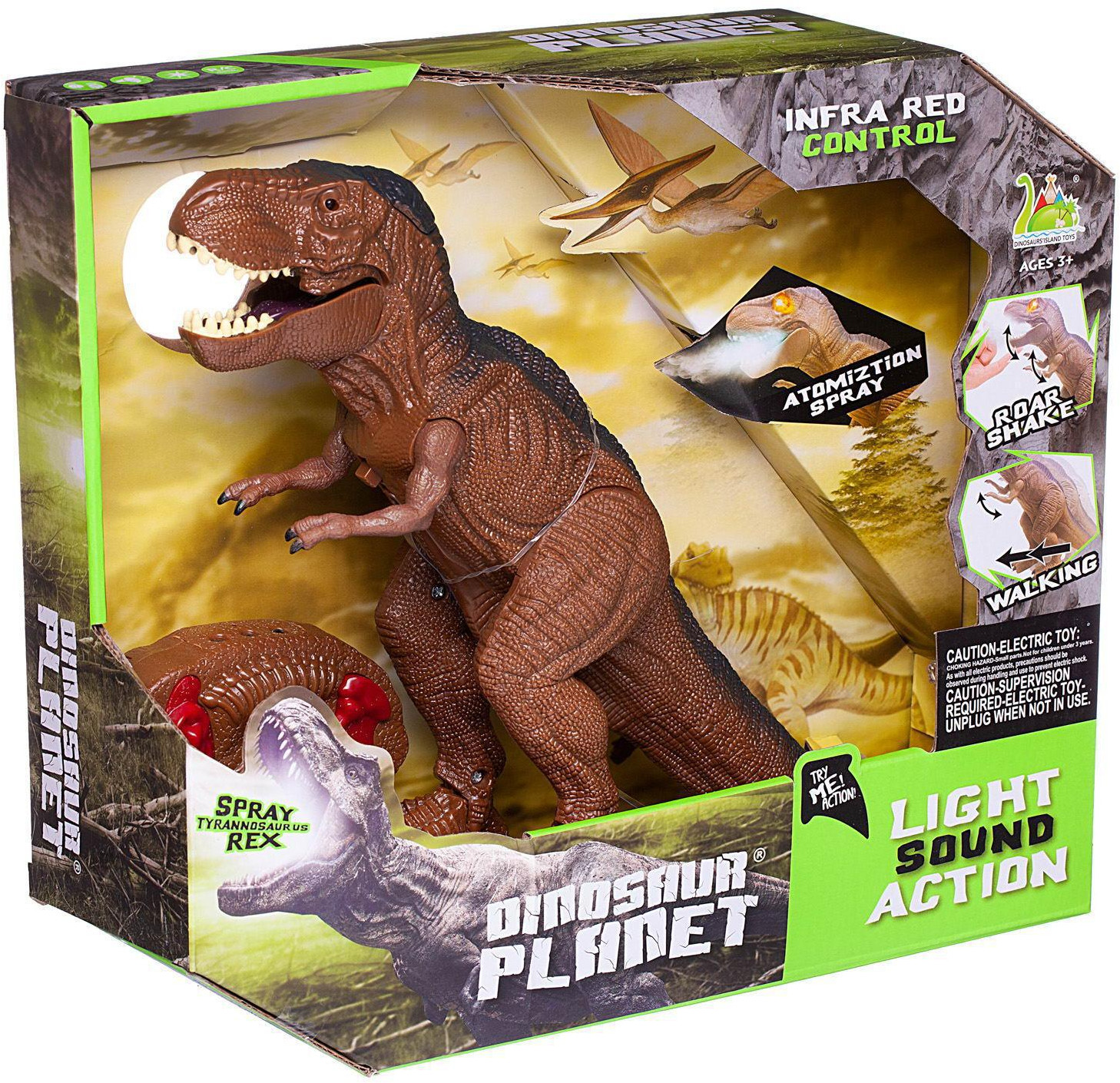 Junfa Toys Интерактивная игрушка «Тиранозавр Рекс»В данный момент этот товар отсутствует в продаже. Возможно, у нас найдется аналогичный или похожий товар здесь. Все дети любят истории и фильмы про доисторический мир, мир динозавров. Этот динозавр «Тиранозавр Рекс» станет отличным подарком любому ребенку. Он имеет реалистичную окраску, его передние лапки подвижны. Управлять его движением можно с помощью пульта дистанционного управления. При ходьбе глаза динозавра горят красным светом, он грозно рычит. Откройте малозаметную крышку в верхней части головы динозавра, с помощью пипетки добавьте внутрь несколько капель воды. Динозавр готов пускать из пасти пар, для этого слегка дотроньтесь до его нижней челюсти, приподнимая ее вверх. |