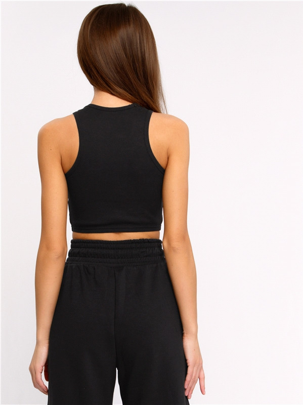 Укороченный топ выполнен из эластичного хлопкового полотна. Изделие без рукавов и округлым вырезом горловины. Отлично сочетается с жакетами, рубашками, кардиганами.