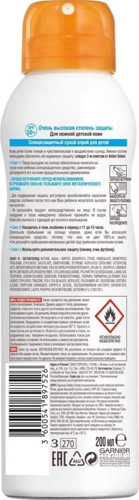 Garnier Спрей сухой солнцезащитный для детей SPF 50-50%