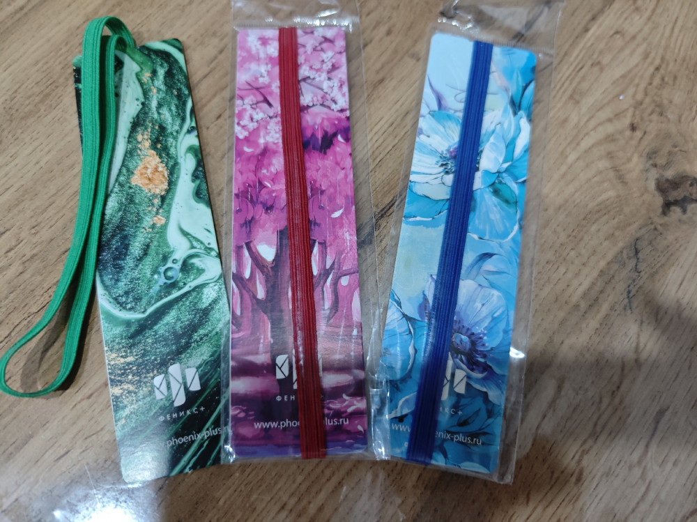 Не прошла мимо такой интересной закладки её можно использовать как обычную и надет на книгу удобно резина хорошо тянется