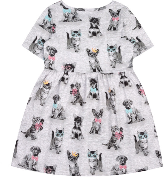 Платье для девочки выполнено из легкого хлопкового полотна. Изделие с короткими рукавами, юбочка присборена по линии талии. Отличный выбор для теплого летнего дня!