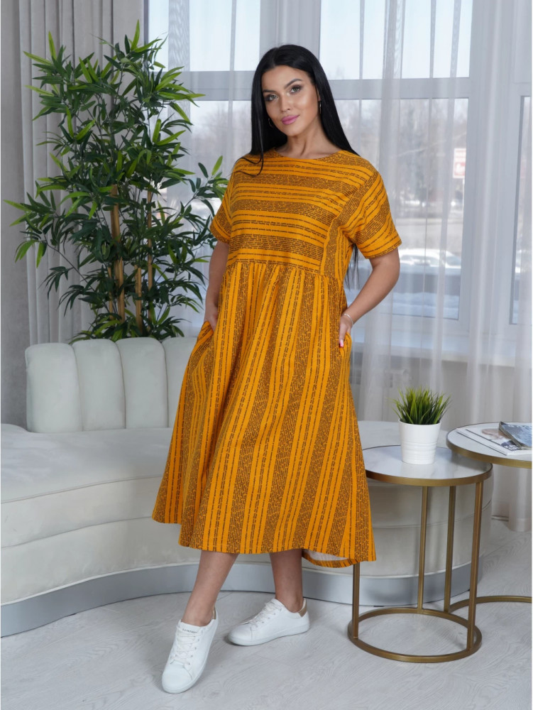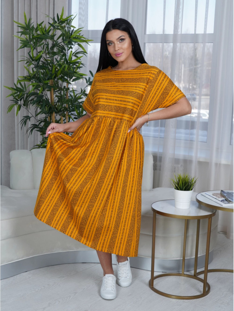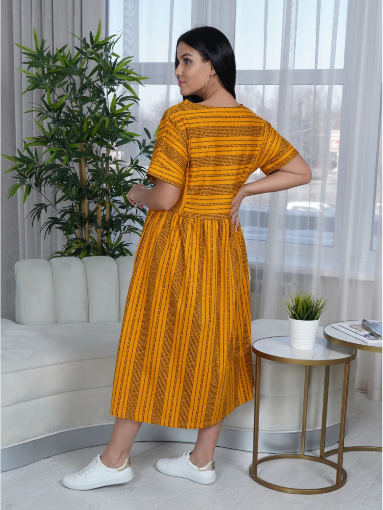 Платье хорошо сшито. Свободного кроя. Красивые расцветки. Хлопок 100%. Мне горчичный цвет не подошел. Комбинированный прекрасен. После стирки ткань никак не изменилась. Спасибо. Рекомендую к приобретению!