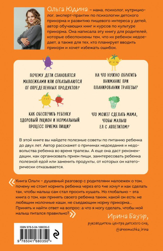 Ольга Юдина, мама, психолог и нутрициолог, рассказывает, как привычки взрослых, стереотипы кормления и детские предпочтения превращают трапезу в настоящее приключение. А главное — в этой книге она дает практические советы для тех, чей ребенок — малоежка.