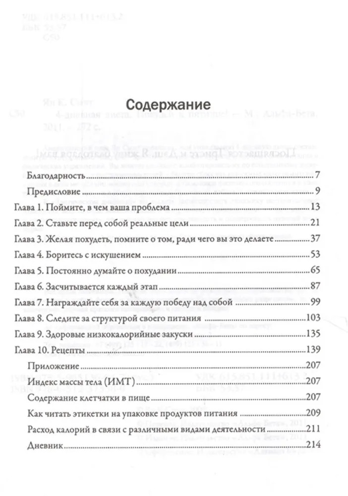 💳 Оплатить за товар можно при получении 🇰🇿 Есть бесплатная доставка по Казахстану 🎁 Копите бонусы с каждой покупки Серия: Живи естественно Американский врач Ян Смит предлагает вам уникальную 4-дневную диету, составленную из нескольких модулей — простых, как детские кубики, и удобных схем питания и физических упражнений. Вы можете свободно комбинировать их по собственному желанию в зависимости от поставленных целей — быстро сбросить ненужные килограммы или изо дня в день методично заниматься совершенствованием физического состояния и контролировать свой вес, — и в обоих случаях вам будет легко добиться нужного результата. В «Диетическом дневнике» вы можете зафиксировать динамику положительных изменений вашего веса, внешнего вида и настроения, а предложенные в книге вопросы и тесты помогут понять, что именно мешает вам похудеть и поддерживать нужный вес в норме. И, конечно же, — потрясающие рецепты блюд для здорового образа жизни! |