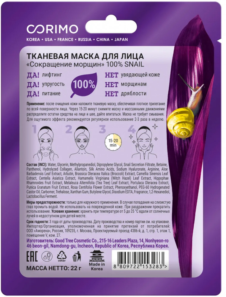 Отзывы «Маска тканевая для лица «Сокращение морщин»»