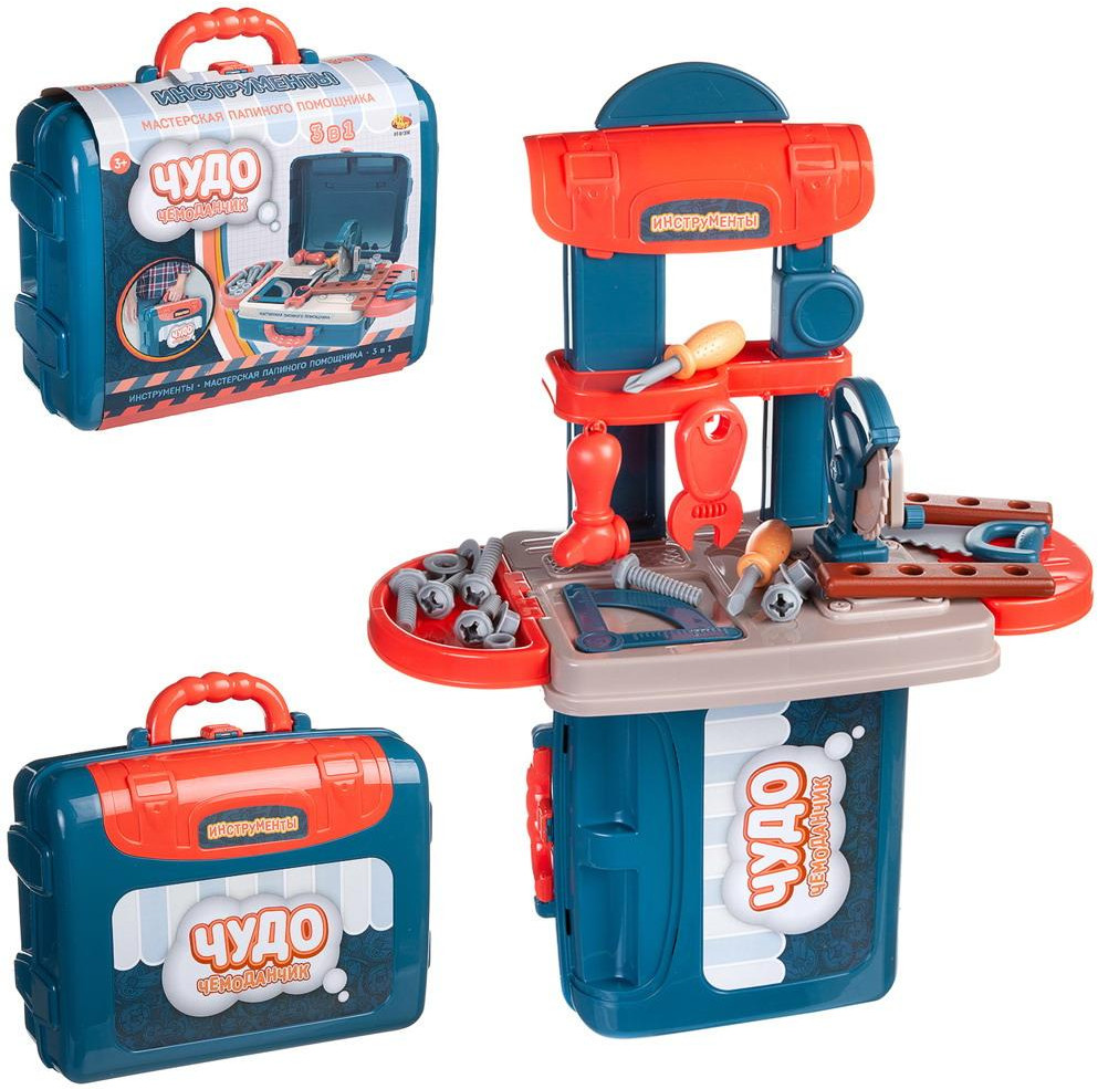 В данный момент этот товар отсутствует в продаже. Возможно, у нас найдется аналогичный или похожий товар здесь. Серия: Чудо-чемоданчик Набор игрушечных инструментов «Мастерская папиного помощника» пригодятся ребенку для сюжетно-ролевых игр. Кроха сможет представить себя настоящим мастером, «починить» в доме мебель, став помощником маме и папе. Набор упакован в компактный чемоданчик, в котором его удобно хранить и транспортировать.