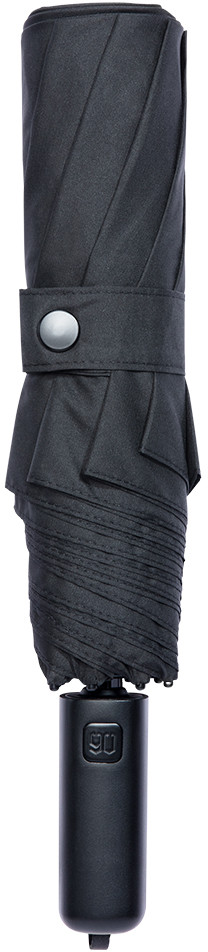 Большой,с виду и по ощущениям крепкий.Мне не понравилось,что кнопка на ручке мало заметна.Крутишь зонт,чтобы найти эту кнопку.Лаконичный дизайн,это все понятно,но меня лично это немного напрягает.
