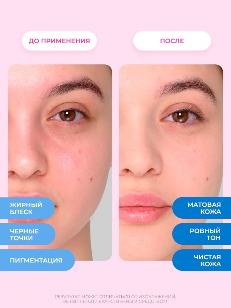 Ложится легкой пленочкой (если сверху не закрывать кремом или сывороткой). Реакция кожи нормальная. О положительном эффекте пока рано говорить, посмотрим через месяц использования.
