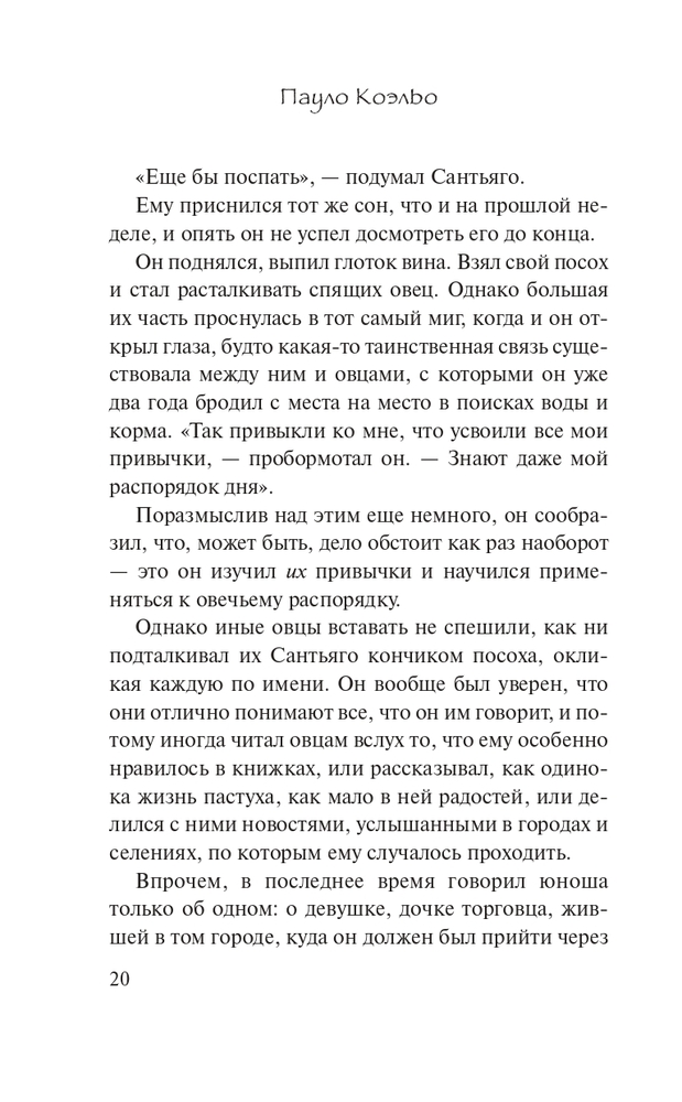 Меня везде преследовали знаки, которые указывали на эту книгу. Отсылки с других книг, отец, друг, все, все, все говорили прочитать эту книгу. Не вытерпела и прочитала эту книгу в электронном варианте. Так понравилась, что решила заказать в бумажном формате, чтобы перечитывать время от времени. Очень понравился сюжет и смыслы, которые автор доносит до нас. Жизнь после этой книги действительно меняется (конечно, если вы этого захотите).