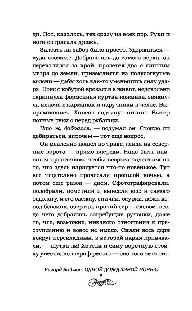 В данный момент этот товар отсутствует в продаже. Возможно, у нас найдется аналогичный или похожий товар здесь. Серия: Мастера ужасов Странный черный дождь саваном накрыл маленький городок Биксби. Теплые густые капли облепляют кожу, просачиваются сквозь одежду, везде оставляя свой след. И любой попавший под этот ливень — меняется. Человека начинают переполнять ненависть, ярость, жестокость и неутолимая жажда убивать всех тех, кто сумел остаться сухим. Дружелюбные соседи превращаются в безумных маньяков. Люди, стоявшие в очереди перед кинотеатром, врываются в зал и расправляются там с беззащитными зрителями. И лишь несколько человек в силу разных обстоятельств остаются в здравом уме. Теперь жизнь этих людей превращается в игру на выживание с совершенно непредсказуемым результатом, а единственный путь к спасению — найти истоки проклятия, поразившего Биксби, и при этом не попасть под дождь, так как сопротивляться его действию невозможно. |