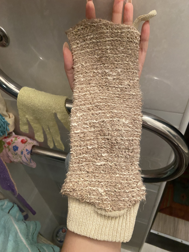 Шикарная мочалка. Искала такую по всему городу и нашла только тут. Понравилась мне по всем параметрам - 1. Двусторонняя. 2. Не имеет привязки к руке (на левую/правую руку). 3. Не содержит поролона ( рукавицы с поролоном были до нее у меня, но очень долго сохнут и пахнут затхлым со временем). 4. Пользуюсь неделю, форму не изменила.