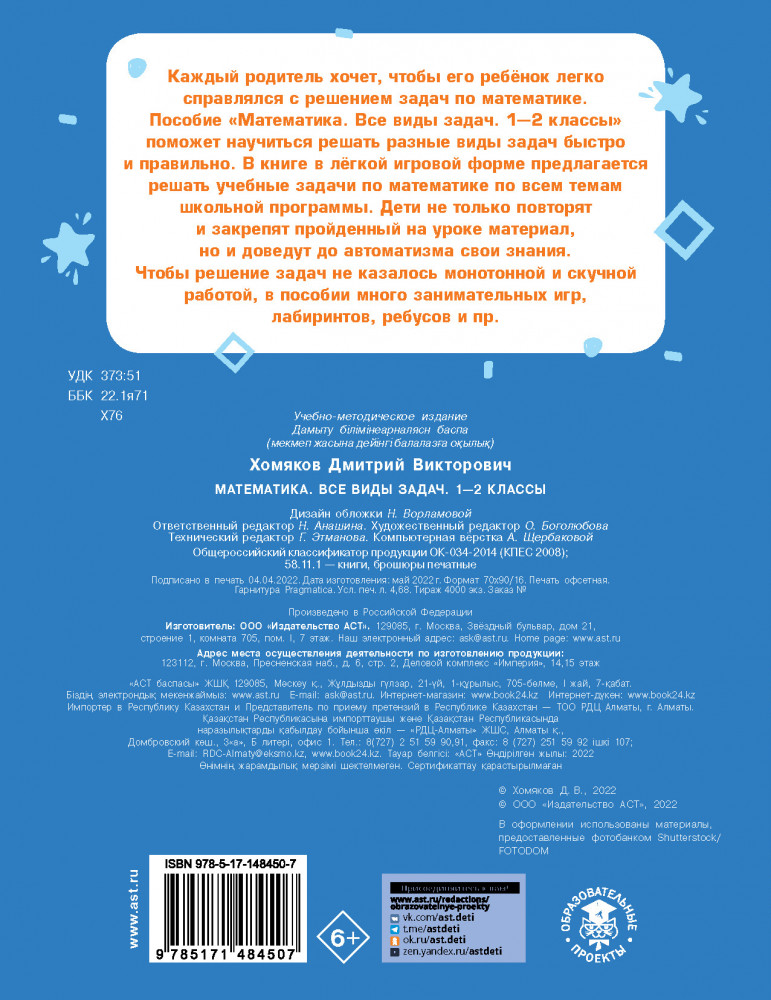 💳 Оплатить за товар можно при получении 🇰🇿 Есть бесплатная доставка по Казахстану от 1 дня 🎁 Копите бонусы с каждой покупки Серия: Тренажерный класс Каждый родитель хочет, чтобы его ребёнок легко справлялся с решением задач по математике. |