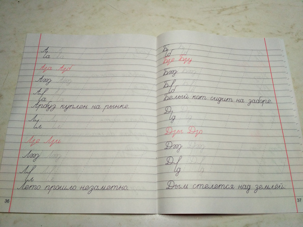 Отличное пособие для формирования почерка! Размер - почти со школьную тетрадь. Рабочих страниц - 48. Бумага - белоснежная с широкой линией. Однозначно - рекомендую всем желающим!