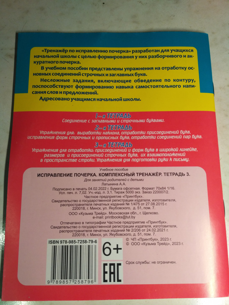💳 Оплатить за товар можно при получении 🇰🇿 Есть бесплатная доставка по Казахстану от 1 дня 🎁 Копите бонусы с каждой покупки «Тренажёр по исправлению почерка» разработан для учащихся начальной школы с целью формирования у них разборчивого и аккуратного почерка. В учебном пособии представлены упражнения на отработку основных соединений строчных и заглавных букв. |