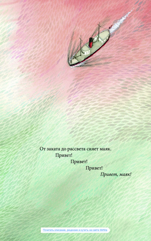 Привет, маяк!Юлия Станиславовна Симбирская, Софи Блэколл В данный момент этот товар отсутствует в продаже. Возможно, у нас найдется аналогичный или похожий товар здесь. Серия: Тёплые книжки За прочными стенами маяка день сменяет ночь, за штилем налетает ураган, сгущается и рассеивается туман, мимо проплывают айсберги. Внутри маяка живет смотритель вместе со своей семьей. Каждый день он ухаживает за лучом — полирует линзу, заливает керосин и записывает наблюдения в журнал. Так проходит год за годом. Но однажды он получает письмо, которое все изменит... |