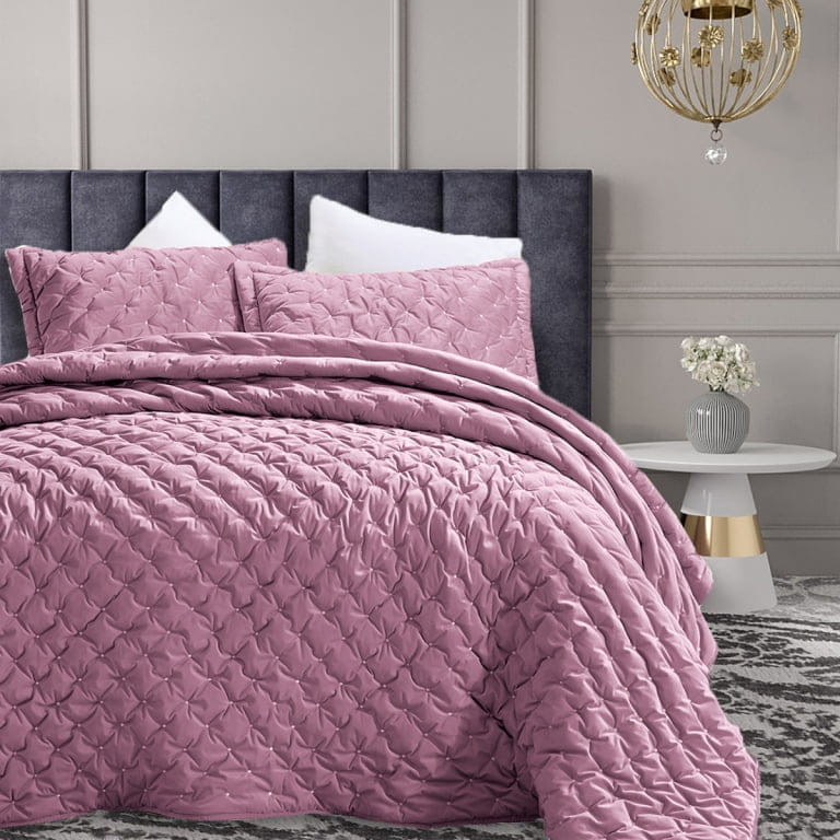 Красивое, приятное на ощупь покрывало с двумя наволочками. Цвет и размер соответствуют описанию. Но очень тяжелое.