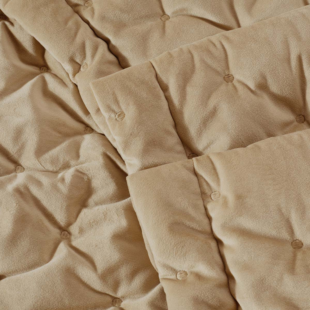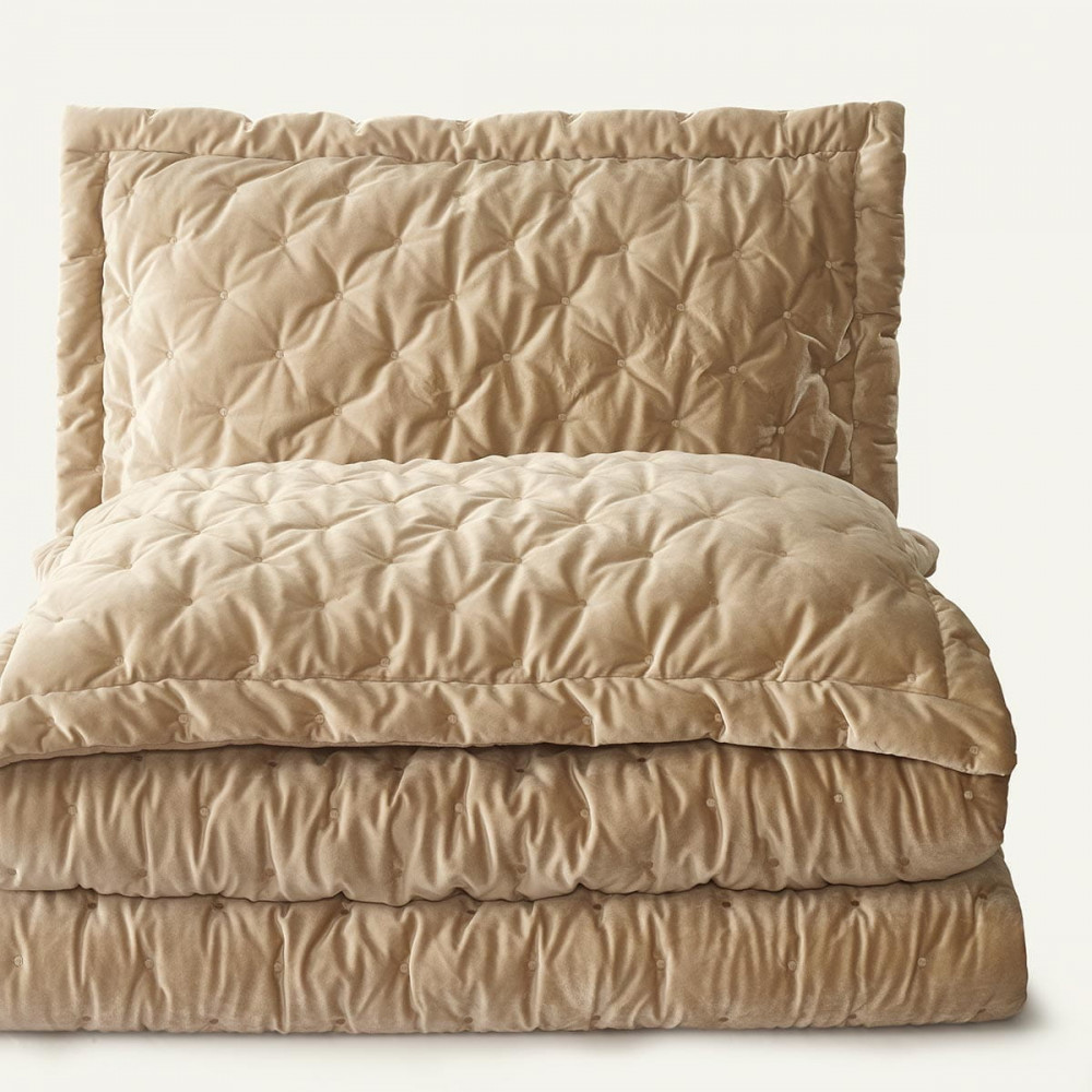 Красивое, приятное на ощупь покрывало с двумя наволочками. Цвет и размер соответствуют описанию. Но очень тяжелое.