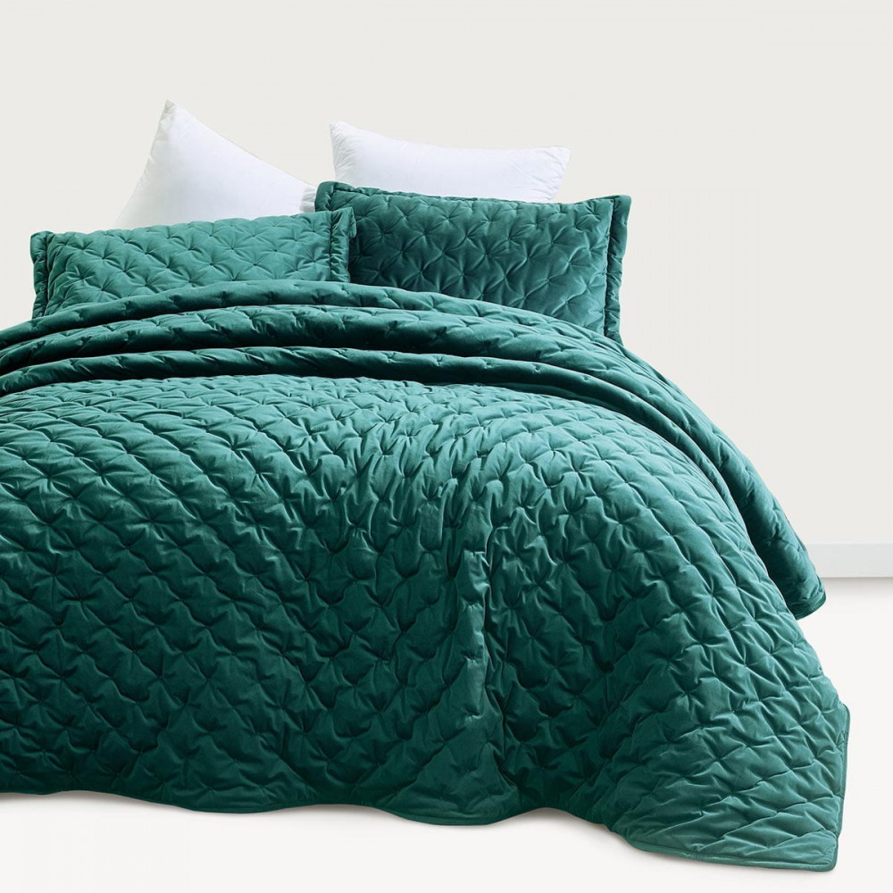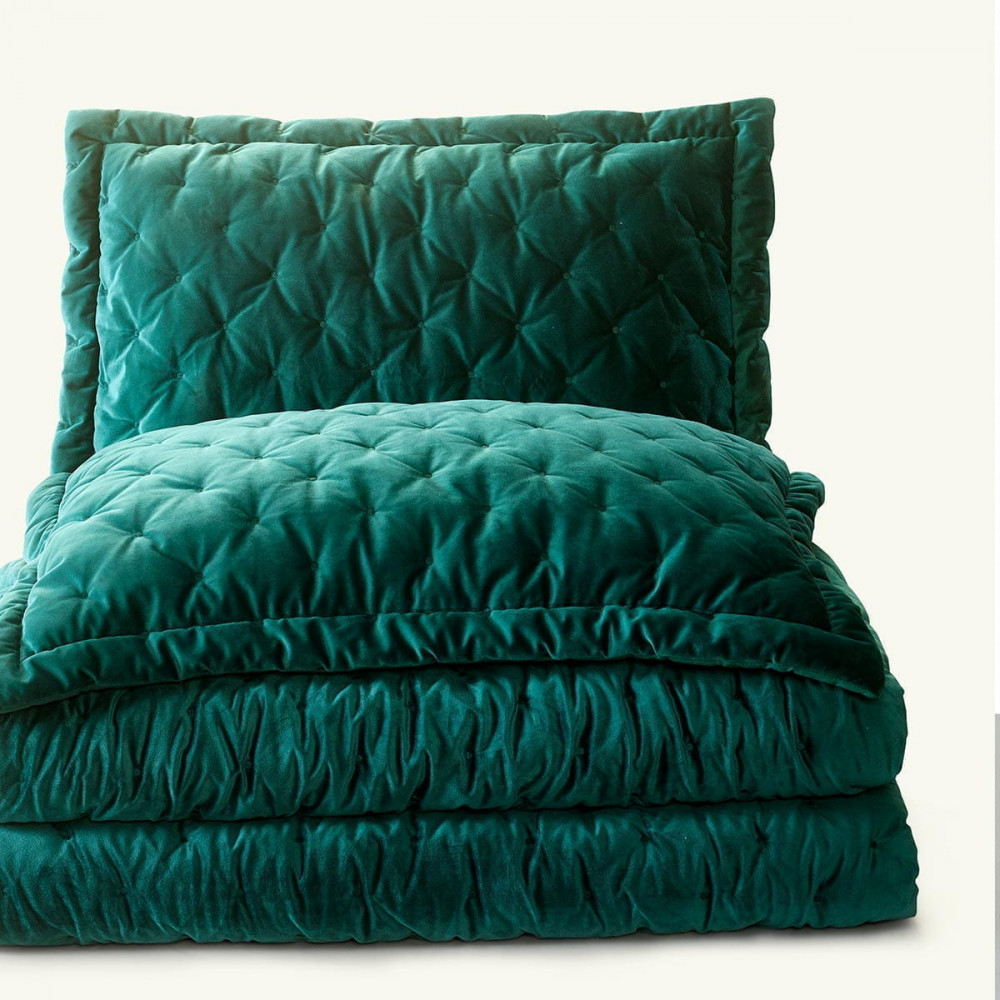 Красивое, приятное на ощупь покрывало с двумя наволочками. Цвет и размер соответствуют описанию. Но очень тяжелое.