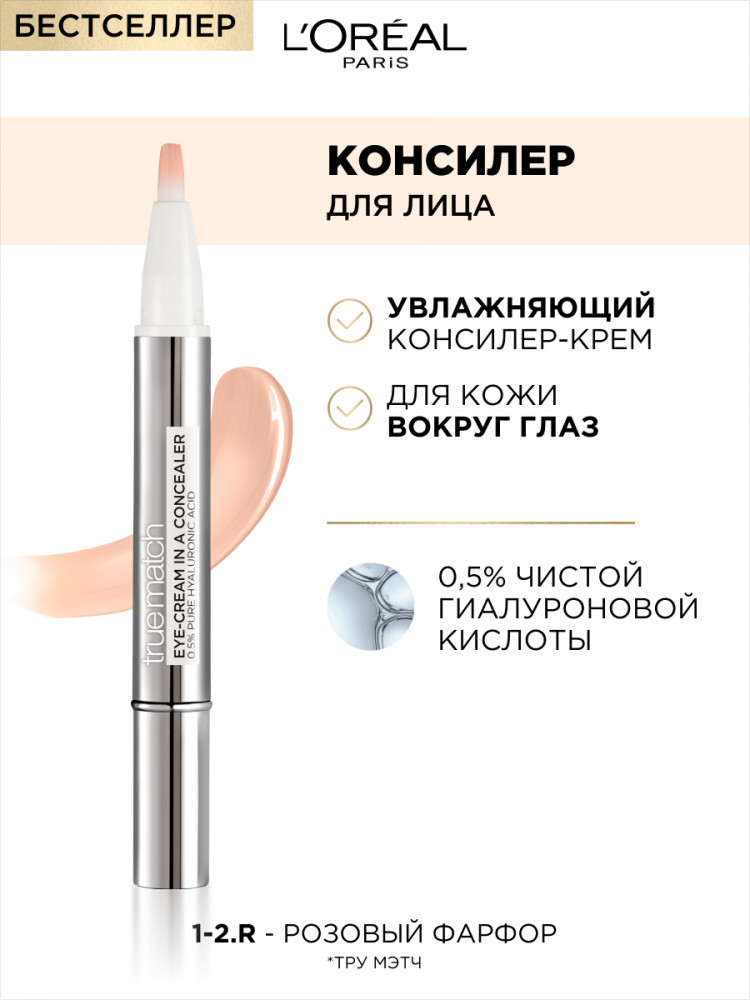 L'Oreal Paris Увлажняющий консилер-крем «True Match» для кожи вокруг глаз, оттенок 1-2R