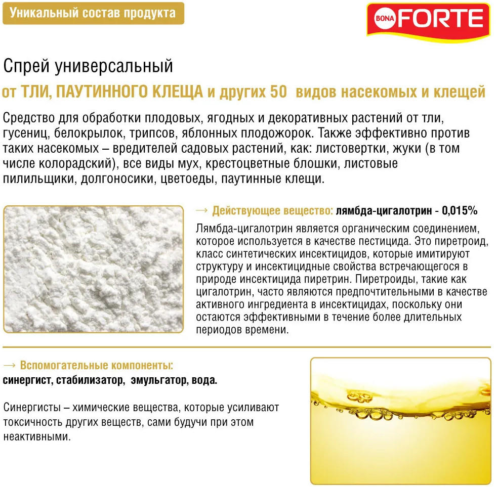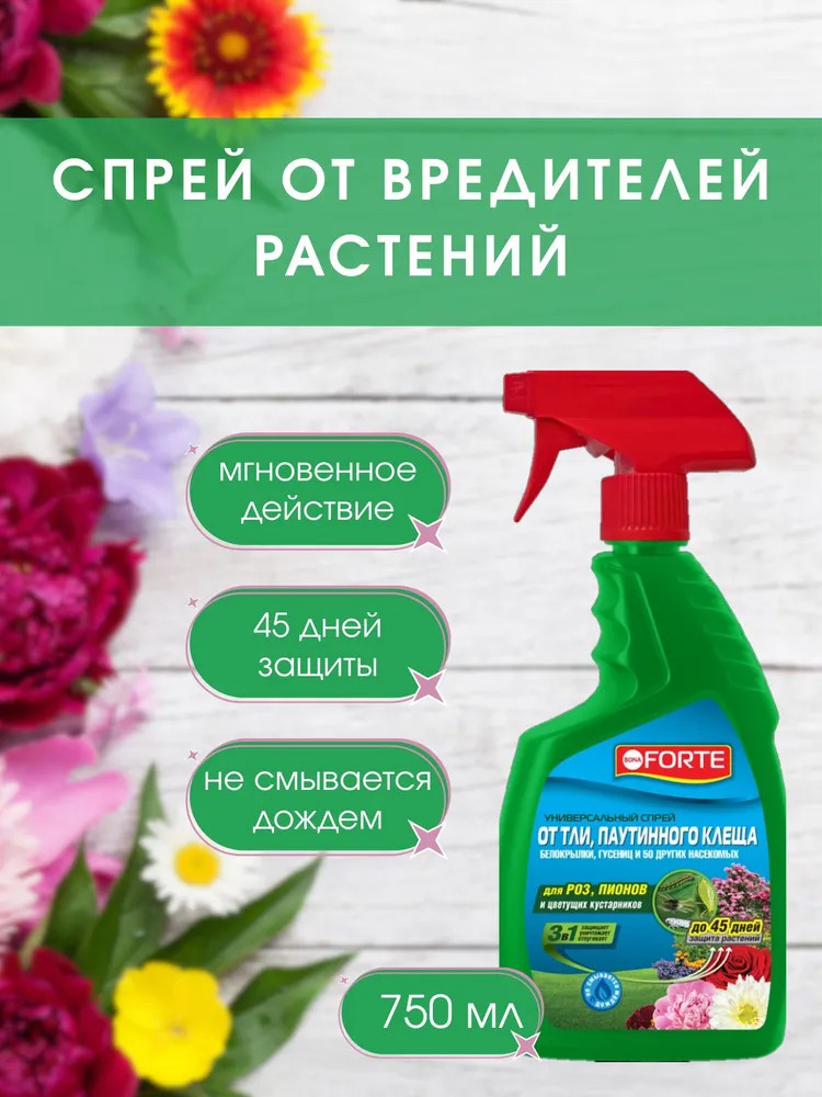 Bona Forte Спрей от тли и паутинного клеща универсальный+149 убивает тлю убивает клеща быстро действует
