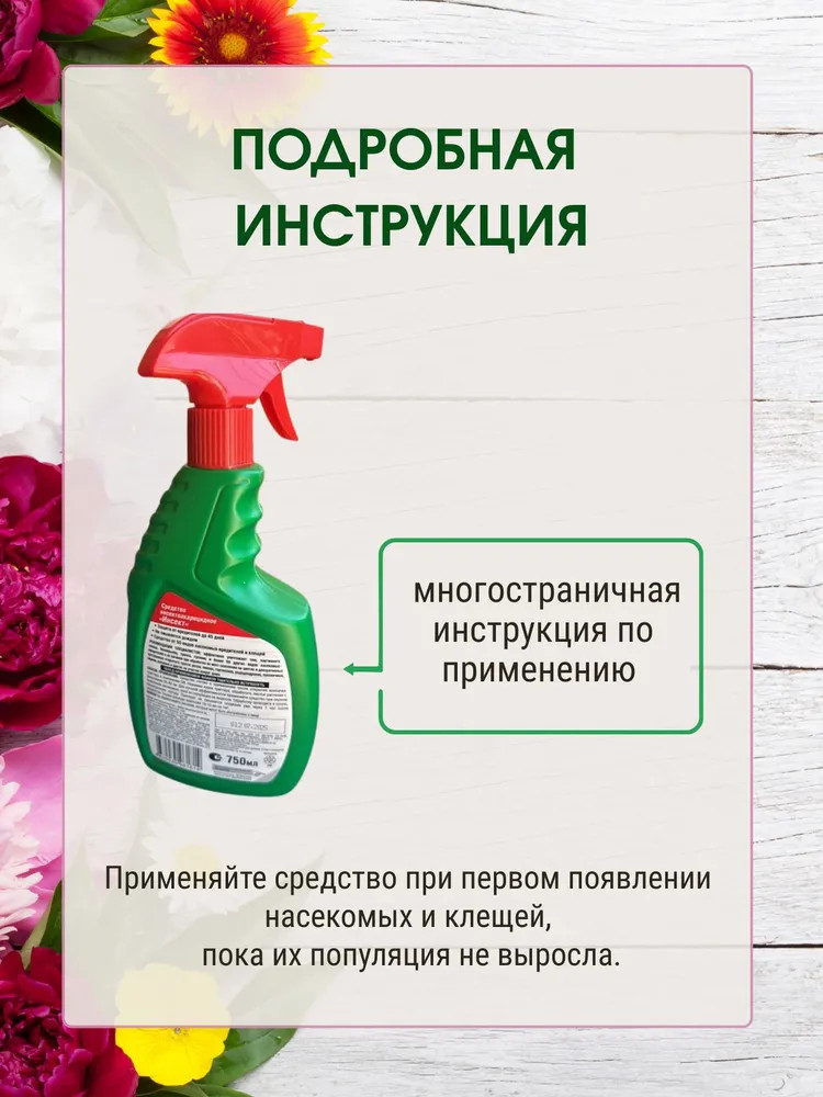 тлю уничтожает эффективно!Большой объём спрея