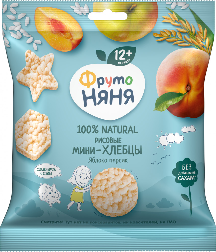 ФрутоНяня Хлебцы-мини рисовые с яблоком, персиком