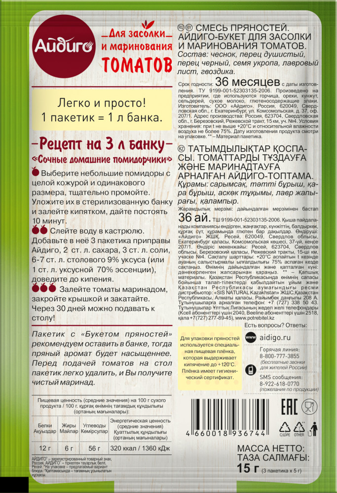 Айдиго Приправа для маринования и засолки томатов-20% +19