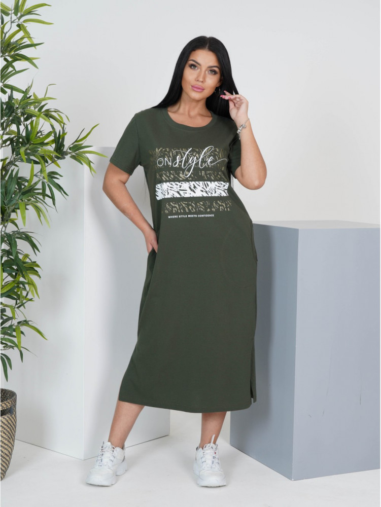 Понравилось, на ОГ 104 см- 50 размер, спокойный, красивый принт, приятный зеленый цвет, рекомендую.