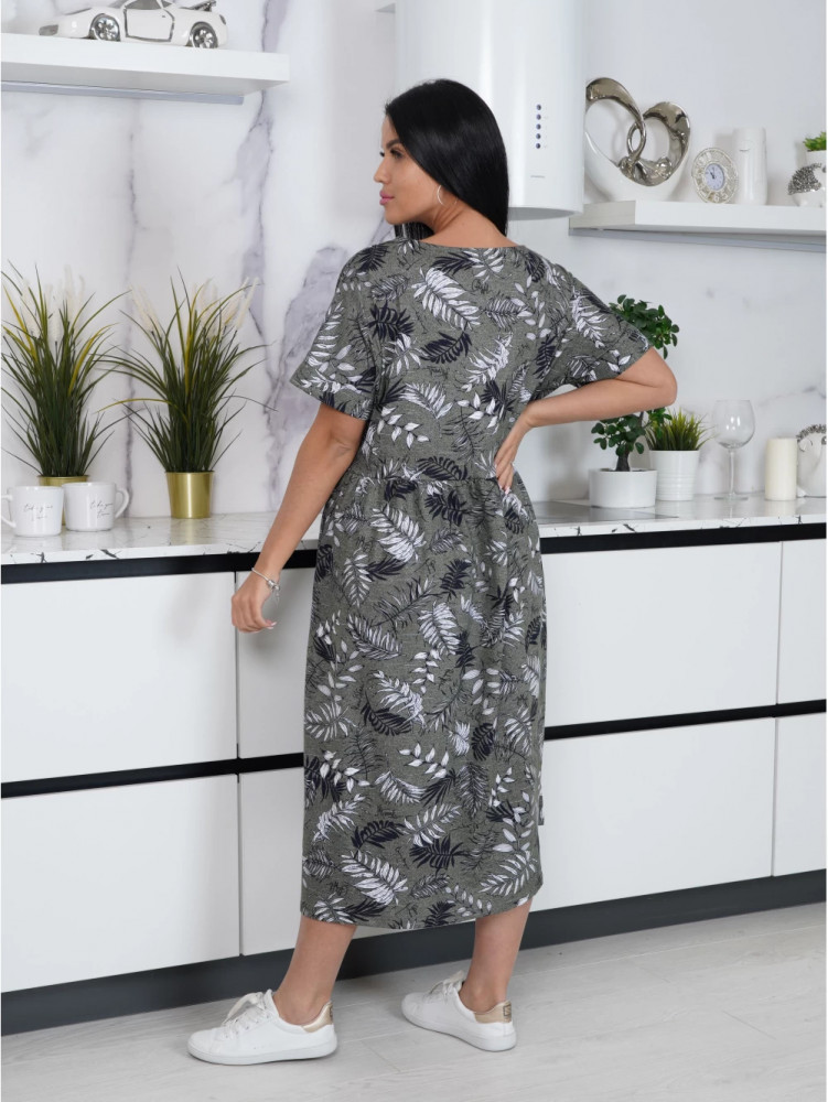 Это платье я покупала в подарок на день рождения своей подруге. Такое же платье она увидела на мне, оно ей очень понравилось. Цвет фона рисунка - хаки.