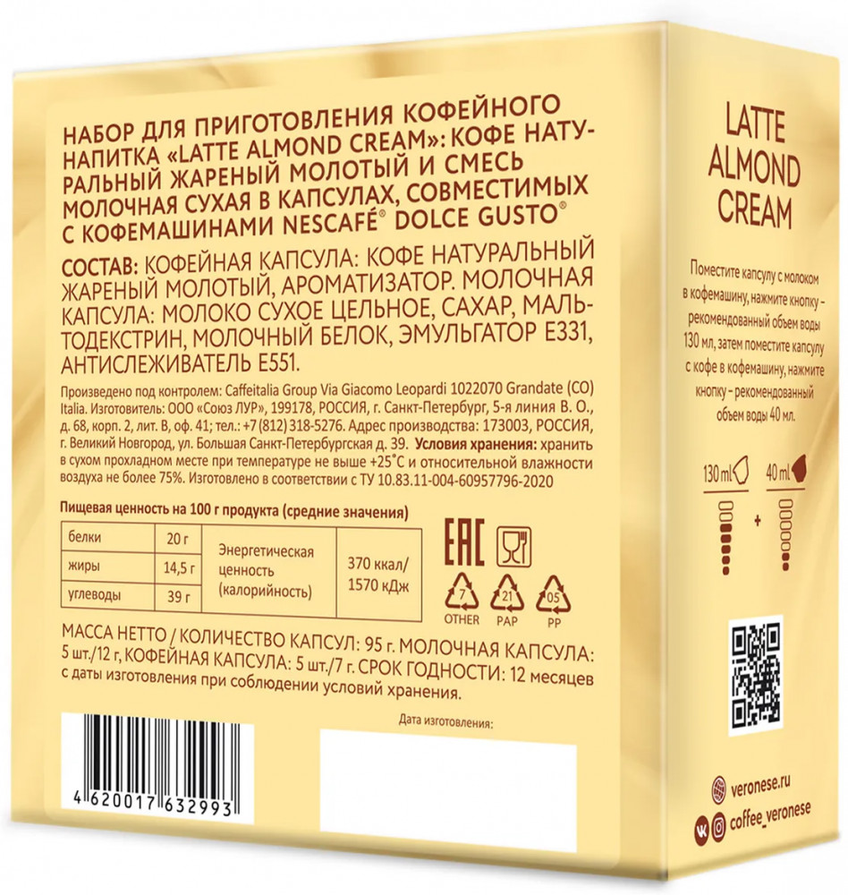 Veronese Набор кофе в капсулах для кофемашины «Latte Almond Cream»