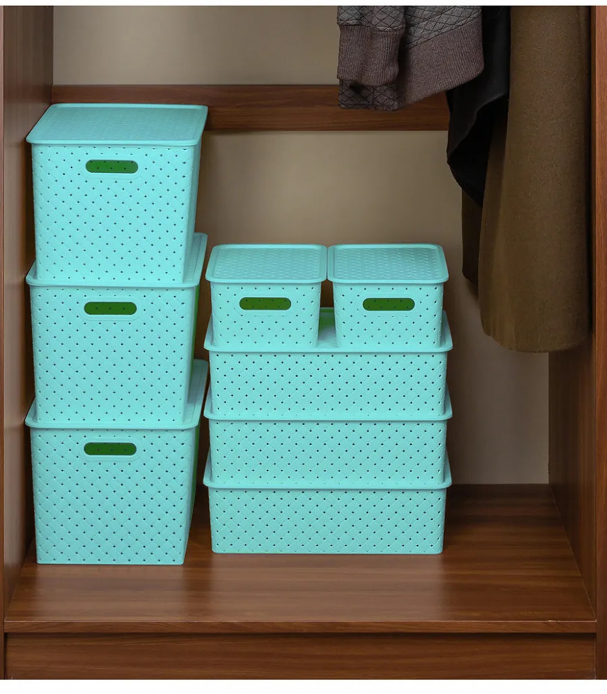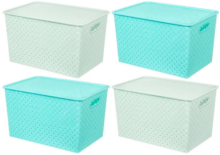 Корзинка с крышкой выполнена из качественного прочного пластика с двумя ручками-выемками. Крышка плотно закрывается, а специальное плетение с дырочками позволяет воздуху проникать внутрь и не дает продуктам испортиться от недостатка кислорода. В корзинке можно хранить как овощи и фрукты, так и хозяйственные предметы. Крышки корзинки сконструированы таким образом, что корзинки разных размеров можно удобно и надежно разместить друг на друге, составив удобный и функциональный набор. Корзинки представлены разных объемов, форм и расцветок, что позволит собрать уникальный набор, подходящий под ваши потребности.