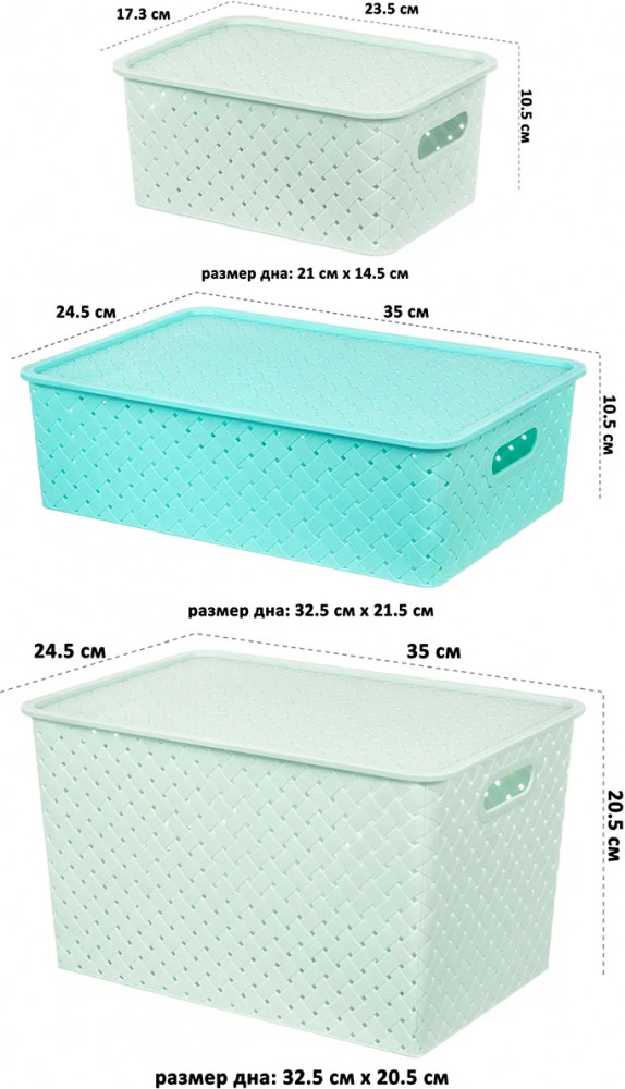 Отличные корзины по очень привлекательной цене. Крышки сидят не плотно, но мне они были не нужны.