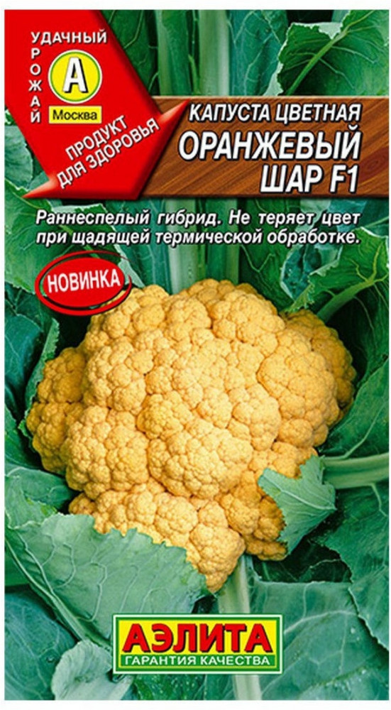 Новый, по настоящему «цветной» гибрид цветной капусты. Необычная окраска результатом генной инженерии не является и не имеет ничего общего с «гмо». Это экологически чистый продукт, созданный методами традиционной селекции. Гибрид раннеспелый, формирует товарную головку массой около 500 г примерно через 70-75 дней от высадки рассады. Красивая оранжевая головка по вкусу не отличается от белоцветной. Но расширяет границы кухонной (и огородной) эстетики и содержит на порядок больше каротина, полезного для зрения и кожи. Продукция не теряет цвет при щадящей термической обработке. Гибрид подходит для производства мини-овощей.