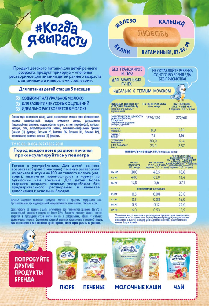 Когда Я вырасту Печенье «Обогащенное железом»