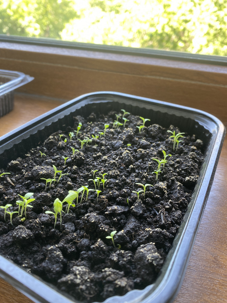 Взошли почти все семена. Растут медленно, тоненькие малыши, прям боишься дышать на них.