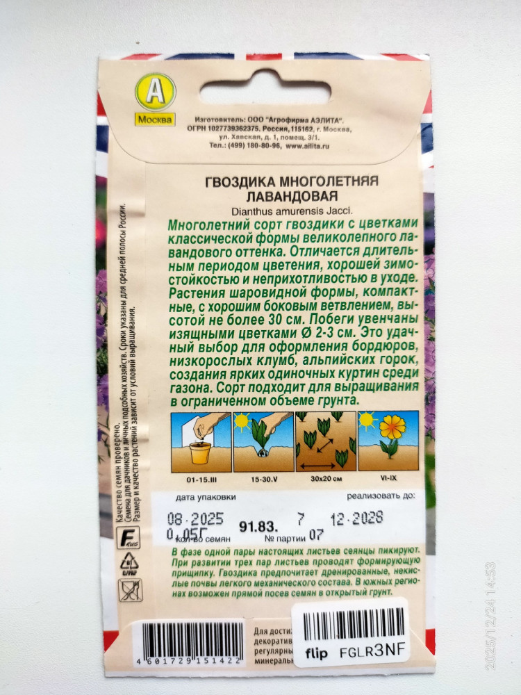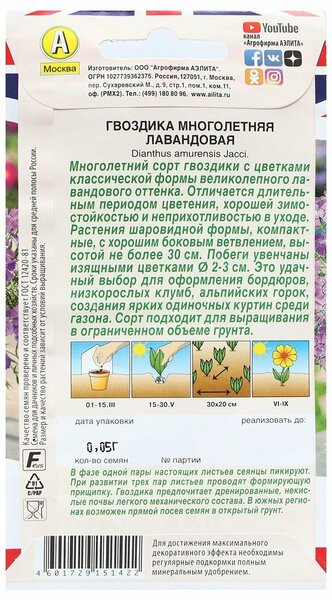 Аэлита Семена гвоздики многолетней «Лавандовая»+10 высокая всхожесть быстро всходит быстро зацветает красивая окраска