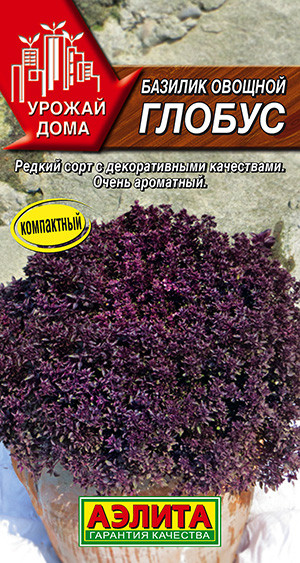 Великолепный сорт для выращивания в домашних условиях. Наряду с красивым внешним видом, обладает замечательным вкусом и неповторимым ароматом. Растения компактные, без всякой прищипки образуют плотные темно-пурпурные шарики высотой и шириной около 30 см. Всего несколько маленьких листочков дополнят, преобразят и украсят как горячие, так и холодные блюда. Прекрасно подходят для сушки и ароматизации масла. Можно выращивать в открытом грунте и теплицах.