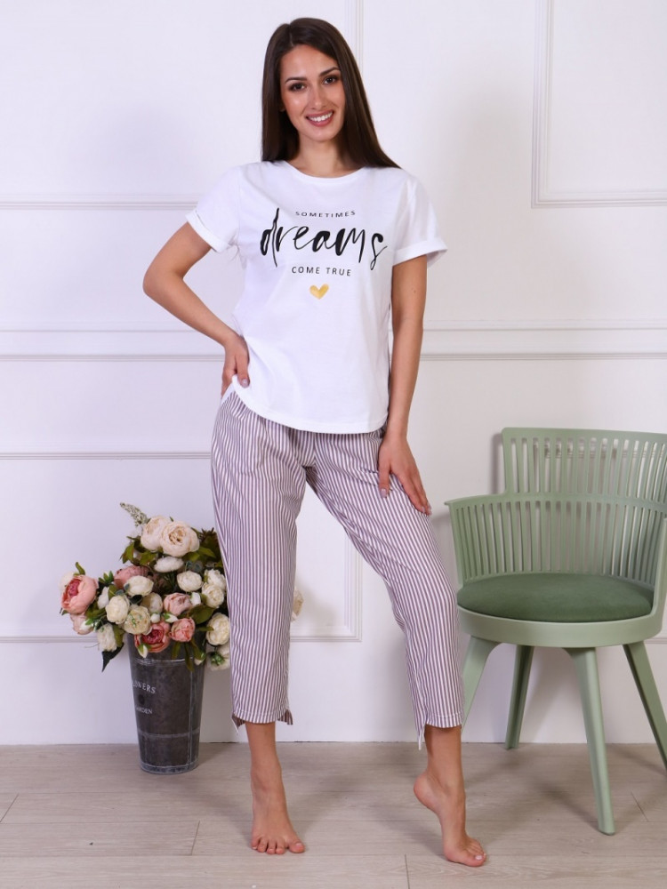Идеальный костюм для дома. Брючки тоже трикотажные, немного тянуться (комфортно). Отличное качество как ткани, так и пошива. Размер соответствует. Спасибо Flip за отличные товары.