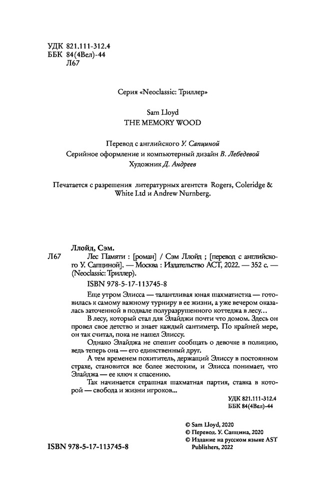 💳 Оплатить за товар можно при получении 🇰🇿 Есть бесплатная доставка по Казахстану 🎁 Копите бонусы с каждой покупки Серия: Neoclassic: Триллер Еще утром Элисса — талантливая юная шахматистка — готовилась к самому важному турниру в ее жизни, а уже вечером оказалась заточенной в подвале полуразрушенного коттеджа в лесу... |