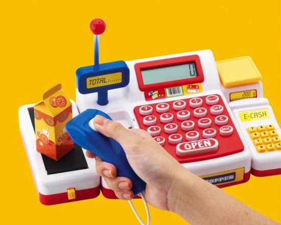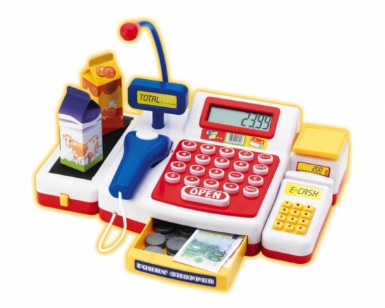 - электронная касса, работающая как калькулятор, с электронным табло и микрофоном,
