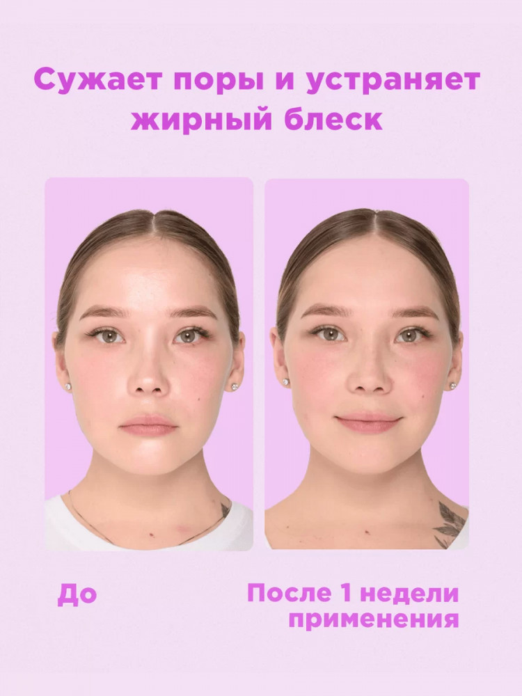 Ложится легкой пленочкой (если сверху не закрывать кремом или сывороткой). Реакция кожи нормальная. О положительном эффекте пока рано говорить, посмотрим через месяц использования.