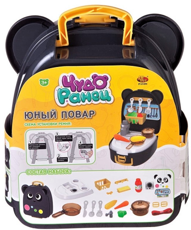 ABtoys Набор игровой «Юный повар»В данный момент этот товар отсутствует в продаже. Возможно, у нас найдется аналогичный или похожий товар здесь. Серия: Чудо-ранец В игровой набор «Мой милый панда. Юный повар» серии «Чудо-ранец» бренда ABtoys включены предметы для увлекательной игры, в которой ребенок сможет почувствовать себя настоящим шеф-поваром. Набор упакован в компактный чемоданчик, в котором его удобно хранить и транспортировать. Упаковка и детали наборы выполнены из качественного прочного пластика привлекательных цветов. С помощью дополнительных элементов набора чемоданчик легко преобразуется в мини-кухню. Закрепив на нем ремень, мы получим удобный ранец. Подробный состав набора и инструкция по сборке указаны на упаковке, сохраняйте ее. |