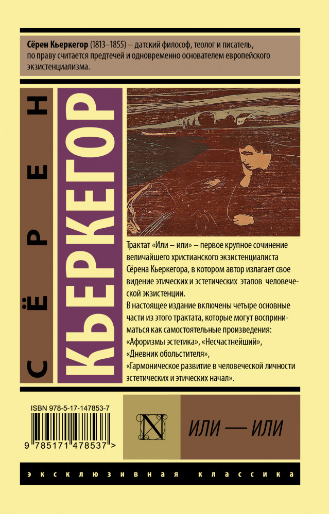 💳 Оплатить за товар можно при получении 🇰🇿 Есть бесплатная доставка по Казахстану от 1 дня 🎁 Копите бонусы с каждой покупки Серия: Эксклюзивная классика Сёрен Кьеркегор (1813-1855) — датский философ и писатель, по праву считается предтечей и одновременно основателем европейского экзистенциализма. |