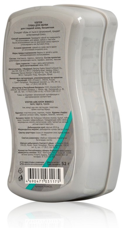 💳 Оплатить за товар можно при получении 🇰🇿 Есть бесплатная доставка по Казахстану 🎁 Копите бонусы с каждой покупки Губка для обуви из гладкой кожи Vister бесцветная. Очищает от пыли и загрязнений, придает естественный блеск. Защищает от соли и влажности. |