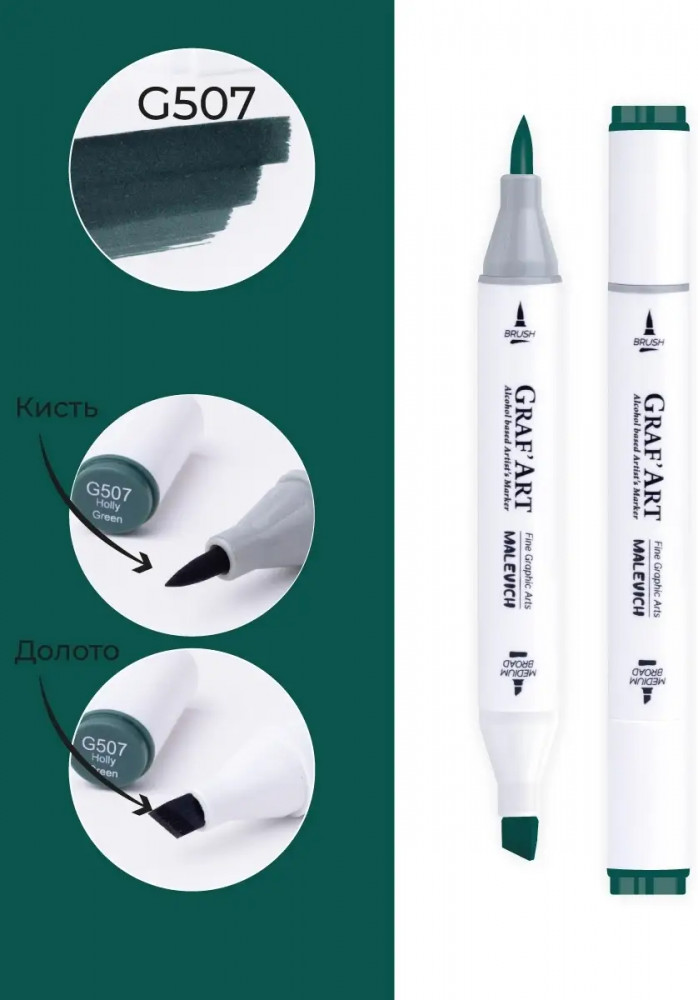 МалевичЪ Маркер спиртовой «Graf'Art», G507 Зеленый остролист