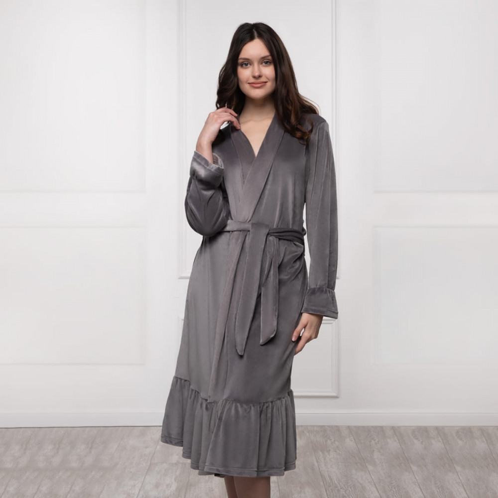чудесный халат, очень женственный и уютный, мне подошёл 46 размер, на мои параметры 96/80/102 СПАСИБО!